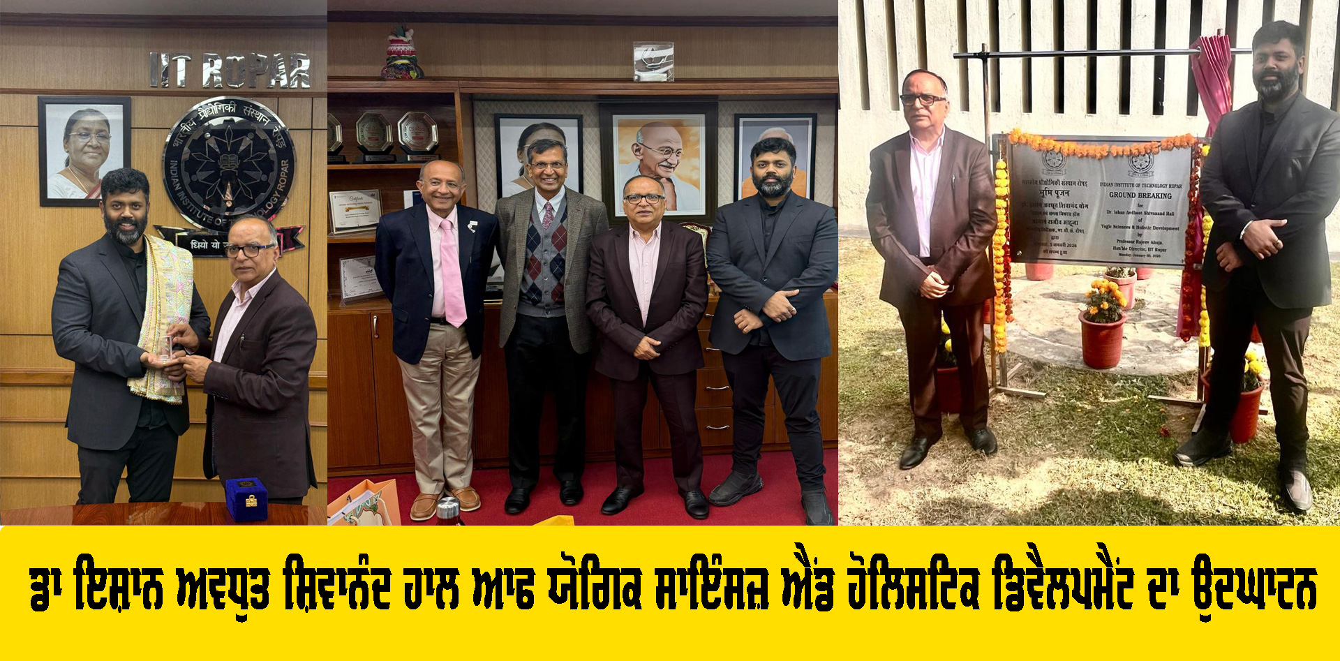 ਭਾਰਤੀ ਪ੍ਰੌਦਯੋਗਿਕੀ ਸੰਸਥਾਨ (IIT) ਰੋਪੜ ਵਿੱਚ ਅੱਜ ਡਾ. ਇਸ਼ਾਨ ਸ਼ਿਵਾਨੰਦ—ਅੰਤਰਰਾਸ਼ਟਰੀ ਮਾਨਸਿਕ ਸਿਹਤ ਖੋਜਕਾਰ, Yoga of Immortals (YOI) ਦੇ ਸੰਸਥਾਪਕ ਅਤੇ IIT ਰੋਪੜ ਦੇ Centre of Excellence for Holistic Wellbeing ਵਿੱਚ ਐਡਜੰਕਟ ਫੈਕਲਟੀ—ਦੀ ਅਗਵਾਈ ਹੇਠ ਤਿੰਨ ਇਤਿਹਾਸਕ ਅਕਾਦਮਿਕ ਅਤੇ ਸੰਸਥਾਗਤ ਪਹਲਾਂ ਦੀ ਸ਼ੁਰੂਆਤ ਕੀਤੀ ਗਈ। ਇਨ੍ਹਾਂ ਪਹਲਾਂ ਦਾ ਉਦੇਸ਼ ਵਿਗਿਆਨਕ ਤਰੀਕੇ ਨਾਲ ਪਰਖੀਆਂ ਗਈਆਂ ਭਾਰਤੀ ਗਿਆਨ ਪ੍ਰਣਾਲੀਆਂ (IKS) ਨੂੰ ਆਧੁਨਿਕ ਉੱਚ ਸਿੱਖਿਆ, ਖੋਜ ਅਤੇ ਵਿਦਿਆਰਥੀ ਕਲਿਆਣ ਨਾਲ ਜੋੜਨਾ ਹੈ।