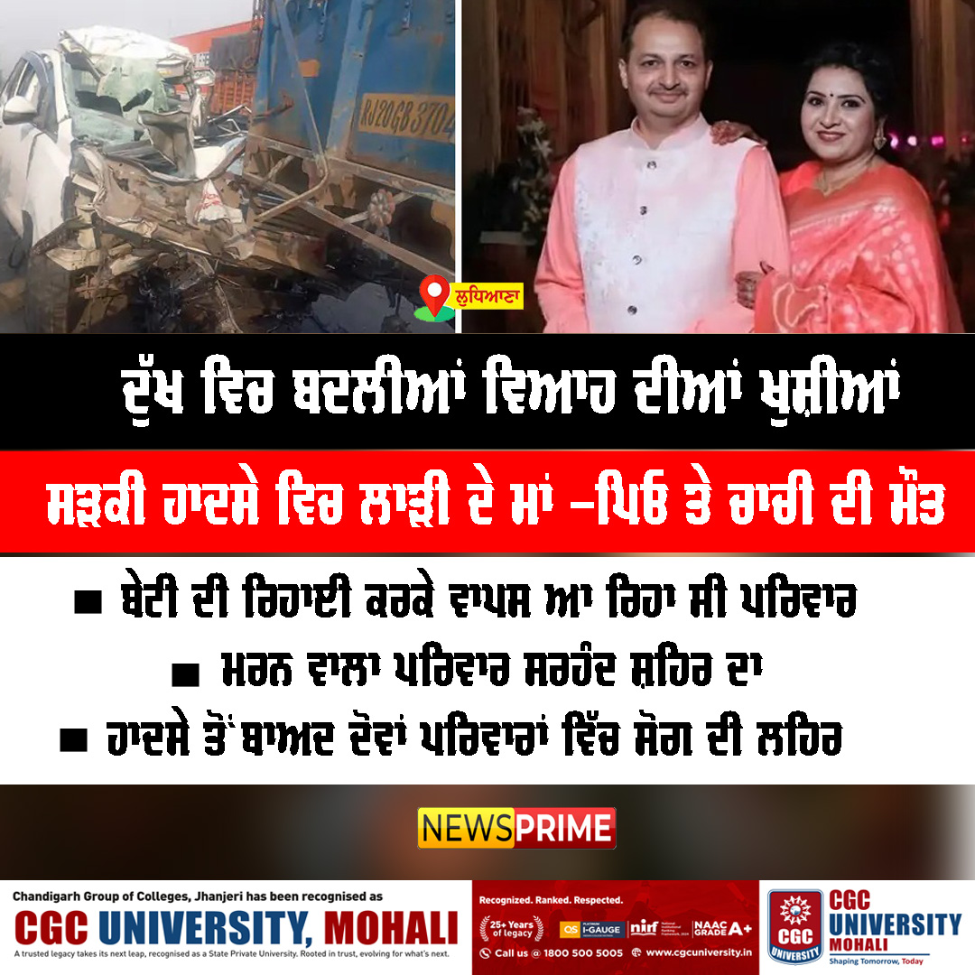 ਲੁਧਿਆਣਾ: ਸੜਕੀ ਹਾਦਸੇ ਵਿਚ ਲਾੜੀ ਦੇ ਮਾਂ -ਪਿਓ ਤੇ ਚਾਚੀ ਦੀ ਮੌਤ