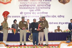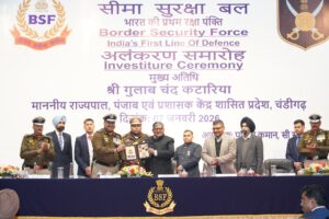 ਸਮਾਰੋਹ ਨੂੰ ਸੰਬੋਧਨ ਕਰਦਿਆਂ ਮਾਣਯੋਗ ਰਾਜਪਾਲ ਸ਼੍ਰੀ ਗੁਲਾਬ ਚੰਦ ਕਟਾਰੀਆ ਨੇ ਇੰਡੋ-ਪਾਕ ਅਤੇ ਇੰਡੋ-ਬੰਗਲਾਦੇਸ਼ ਸਰਹੱਦਾਂ ਦੀ ਸੁਰੱਖਿਆ ਸ਼ਾਂਤੀ ਅਤੇ ਯੁੱਧ ਦੌਰਾਨ ਸੁਚੱਜੇ ਢੰਗ ਨਾਲ ਯਕੀਨੀ ਬਣਾਉਣ ਲਈ ਬੀ ਐਸ ਐਫ ਦੇ ਅਧਿਕਾਰੀਆਂ ਅਤੇ ਜਵਾਨਾਂ ਦੇ ਯੋਗਦਾਨ ਦੀ ਪ੍ਰਸ਼ੰਸਾ ਕੀਤੀ। ਉਨ੍ਹਾਂ ਨੇ ਸਿਵਲ ਪ੍ਰਸ਼ਾਸਨ ਦੀ ਸਹਾਇਤਾ ਦੀ ਲੜੀ ਵਿੱਚ ਕਾਨੂੰਨ-ਵਿਵਸਥਾ ਕਾਇਮ ਰੱਖਣ, ਕਾਊਂਟਰ ਇਨਸਰਜੈਂਸੀ ਭੂਮਿਕਾ ਅਤੇ ‘ਆਪਰੇਸ਼ਨ ਸਿੰਦੂਰ’ ਸਮੇਤ ਜੰਮੂ ਅਤੇ ਪੰਜਾਬ ਵਿੱਚ ਆਏ ਹੜ੍ਹ ਦੌਰਾਨ ਕੀਤੀਆਂ ਬਚਾਓ ਕਾਰਵਾਈਆਂ ਵਿੱਚ ਬੀ ਐਸ ਐਫ ਦੀ ਮਹੱਤਵਪੂਰਨ ਭੂਮਿਕਾ ਨੂੰ ਵੀ ਸਰਾਹਿਆ। ਸਮਾਰੋਹ ਦੇ ਅੰਤ ਵਿੱਚ ਮੁੱਖ ਮਹਿਮਾਨ ਨੇ ਸਾਰੇ ਮੈਡਲ ਪ੍ਰਾਪਤ ਕਰਤਾਵਾਂ ਨੂੰ ਵਧਾਈ ਦਿੱਤੀ ਅਤੇ ਉਨ੍ਹਾਂ ਤੇ ਉਨ੍ਹਾਂ ਦੇ ਪਰਿਵਾਰਾਂ ਲਈ ਸ਼ੁਭਕਾਮਨਾਵਾਂ ਪ੍ਰਗਟ ਕੀਤੀਆਂ।